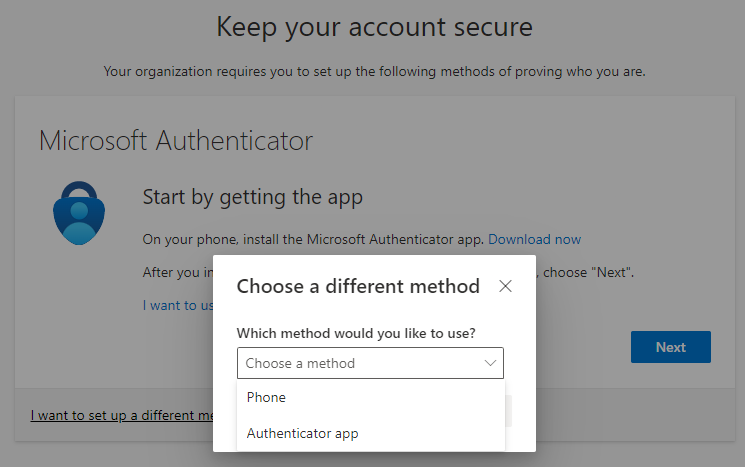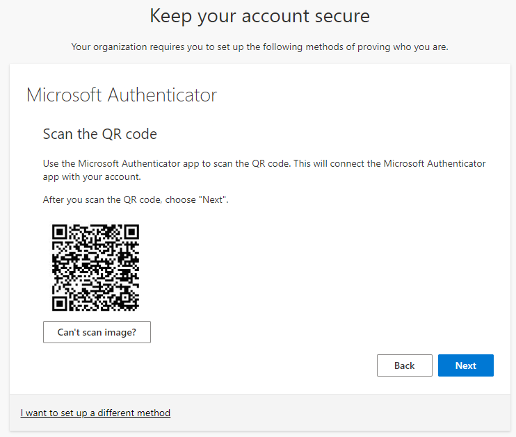 After your first login, Microsoft will prompt you to provide additional information to secure your account.